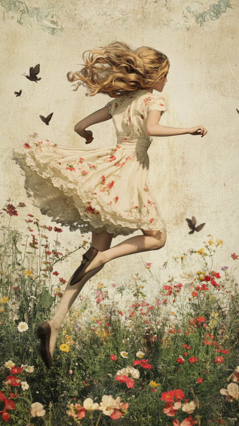Esthetic girl in fantasy garden with vintage vibe wallpapers